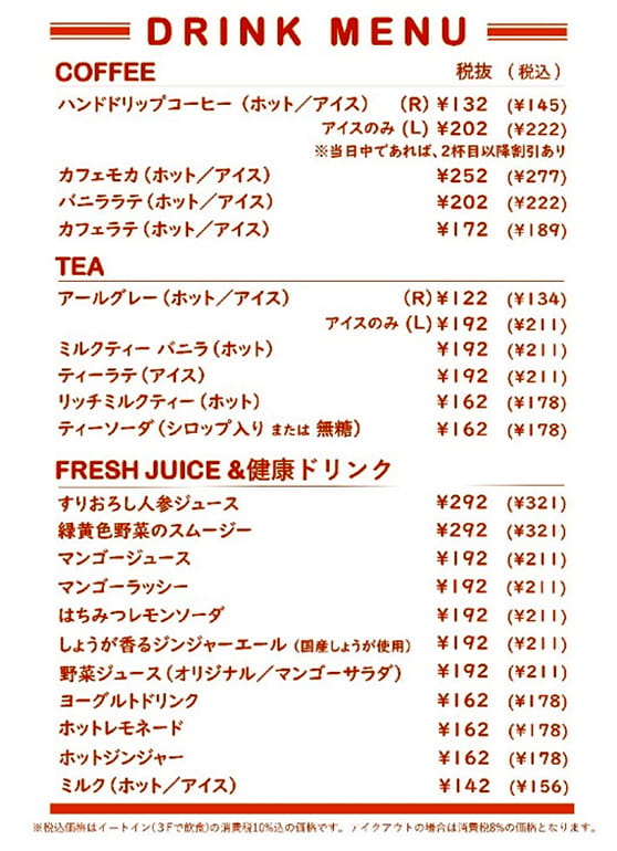会員確認のため、当日は会員証を持参ください。 参加者には、見学会会場で、当事者スタッフが運営する社内向けのカフェ「ふらっとCafé」が販売し、スタッフが提供するドリンクを参加申込時に1品注文いただきます(下記メニュー参照)。 ※メニュー中「R」はレギュラーサイズ、「L」はラージサイズ ※代金は当日、電子決済(交通系など多数対応)で支払。レシートの発行は当日可能、領収書が必要な場合は申込フォームの備考欄で申し出てください。